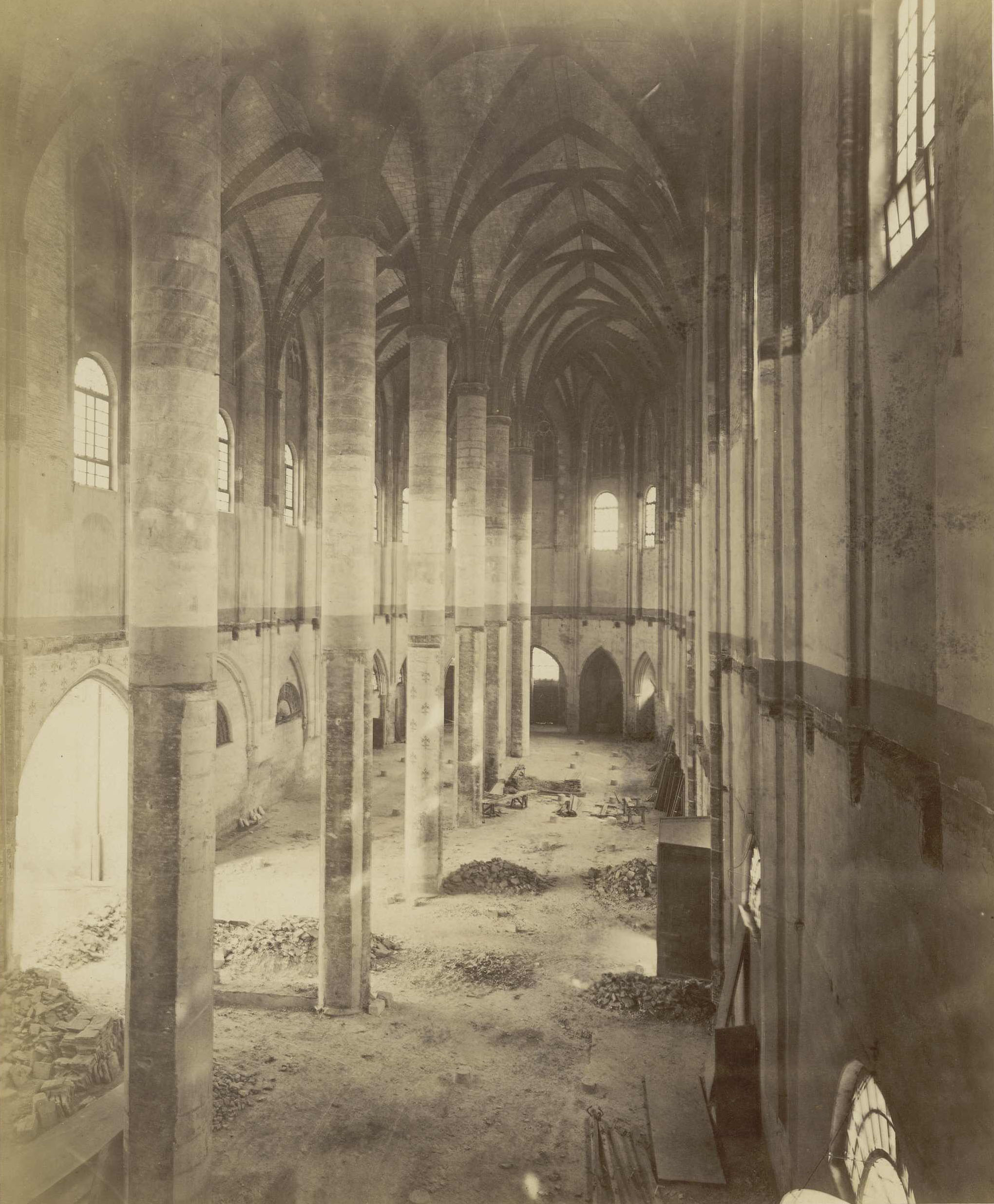 En effet, depuis 1812, le couvent des Jacobins est réquisitionnée pour servir de caserne d'artillerie sur ordre de l'Empereur. La grande nef de l'église est divisée par des planchers : le rez-de-chaussée fait office d'écurie, au 1er étage se trouvent le dortoir et au 2e étage un grenier, où est stocké l'avoine pour les chevaux.