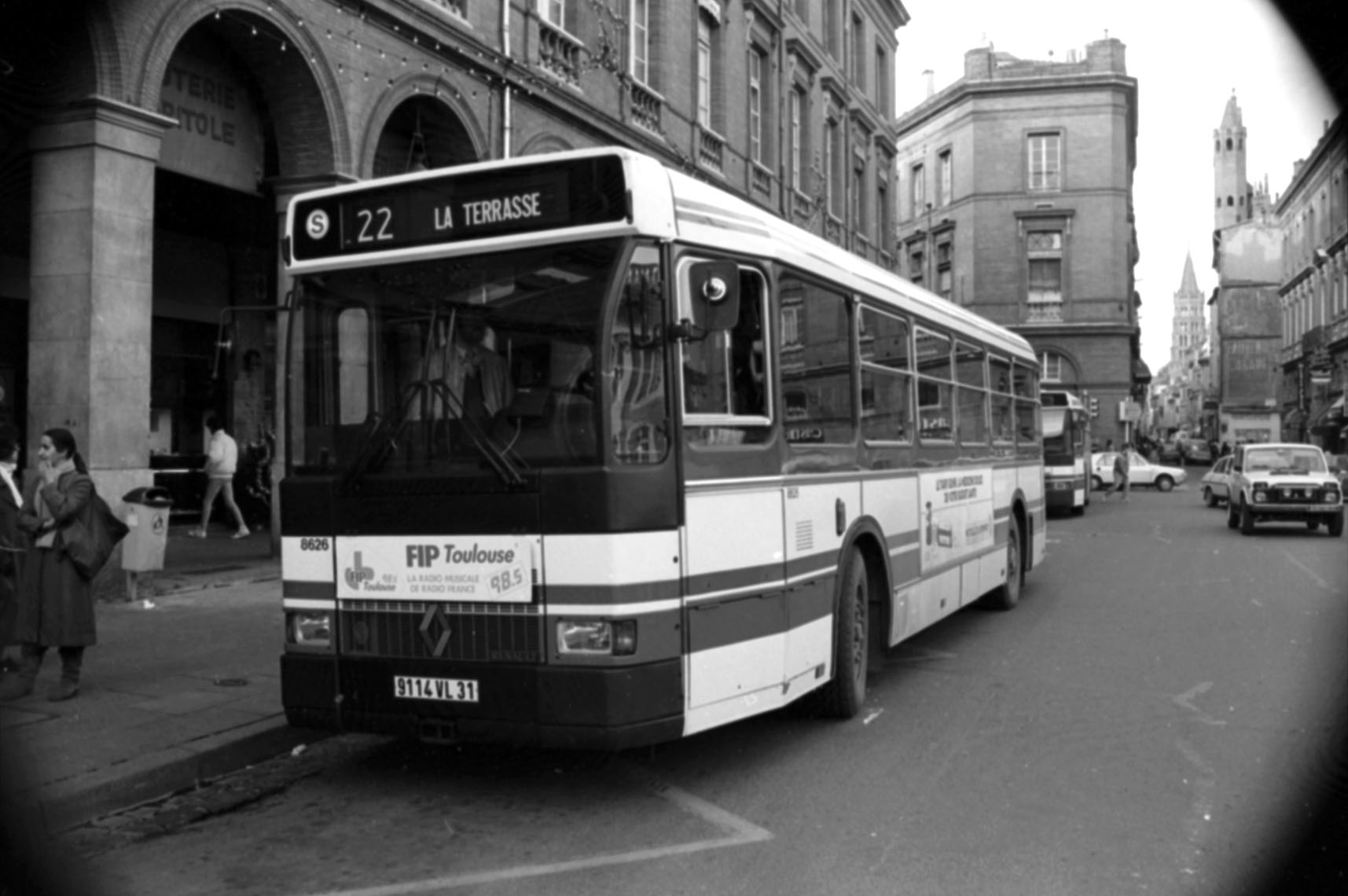 Autobus de la ligne n° 22 desservant le quartier de la Terrasse, place du Capitole, 7 janvier 1987, négatif N&B, 2,4 x 3,6 cm. Francis Alexandre - 15Fi3433/11