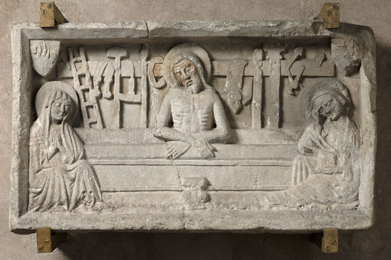 e siècle représente « Le Christ au tombeau dans la vision de saint Grégoire entre la Vierge et saint Jean l'Evangéliste ». L'original est conservé au musée des Augustins depuis 1978 ; une copie est installée à l'emplacement qu'il occupait sans doute depuis la construction du mur pignon au milieu du 19