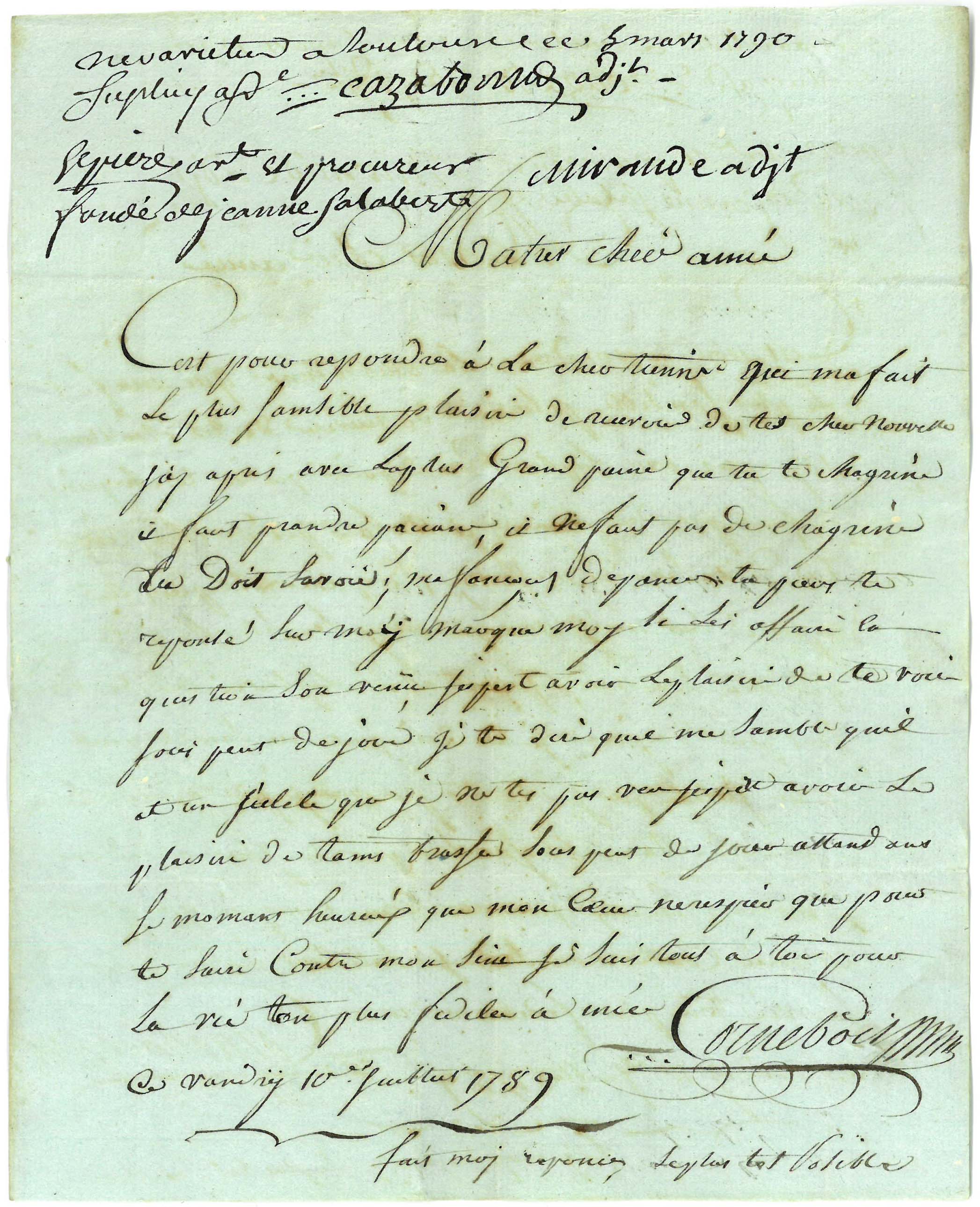 Quelques mois ont passé depuis la mise en ligne de ces dossiers, et d'autres délicieuses et délicates lettres ne cessent d'apparaître avec la publication de nouveaux inventaires (ainsi cette procédure de 1790 qui nous révèle 10 tendres missives adressées à Janeton), le parfum des jasmins s'est ravivé et arrive jusqu'à nous...