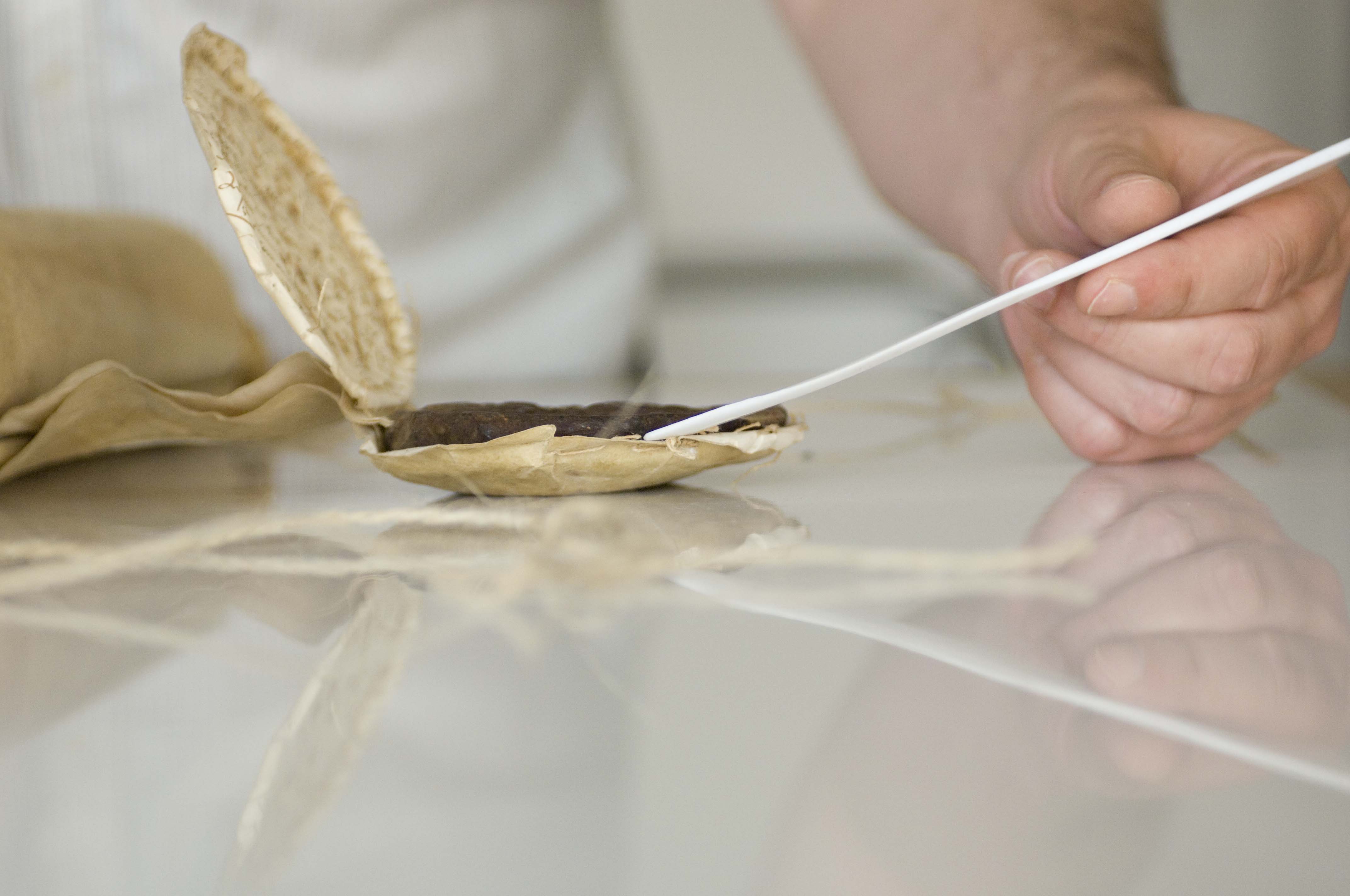 Dans les deux premiers cas, les documents sont confiés à une entreprise qui procède à leur enlèvement dans le cadre d’un contrat dûment notifié, et assorti de pénalités (échelonnées et majorées) en cas de retard, défaut de manipulation ou de conditionnement, détérioration ou même destruction. Bien sûr, un document d’archives, unique et irremplaçable, ne se résume pas à une valeur d’assurance. Mais la balance bénéfices/risques reste positive : l’entreprise en question a tout intérêt à prendre grand soin de « nos » documents pour reconduire des marchés arrivés à échéance, convaincre de nouveaux clients, bénéficier d’une bonne réputation dans un milieu assez « feutré » ; et de l’autre côté, une fois restaurés et/ou numérisés, « nos » documents sont désormais prêts à affronter les prochaines décennies (voire les prochains siècles) avec sérénité (et nous avec). Un partenariat gagnant-gagnant.